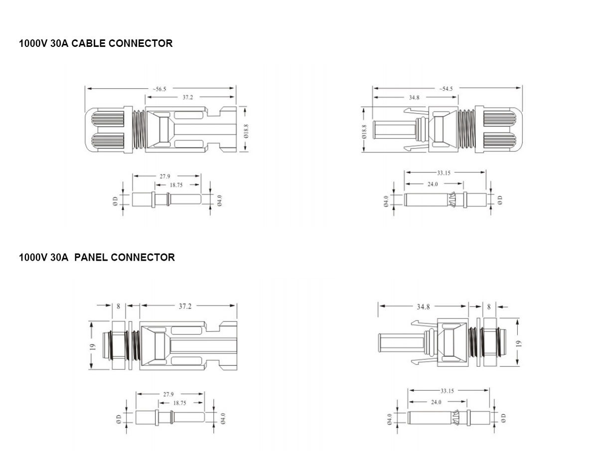 Contact material: Copper, silver plated of IP67 cable connector solar